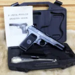 Comes with 2 magazines, black plastic case, and original manual. Black plastic grips.